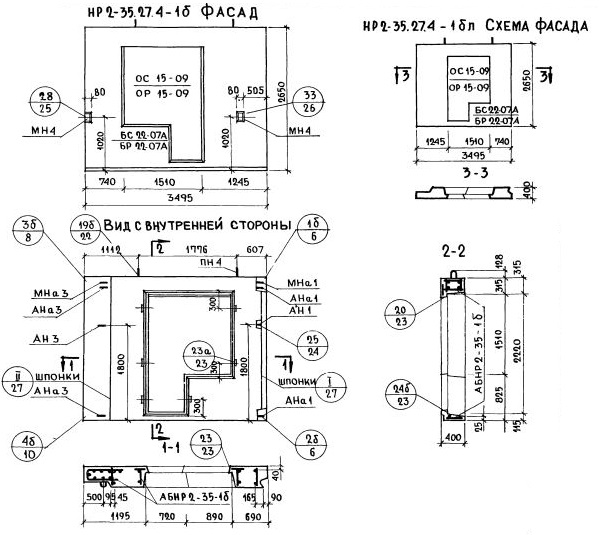 НР2-35.27.4-1бл Наружная стеновая панель рядовая по Серии 1.132-1.