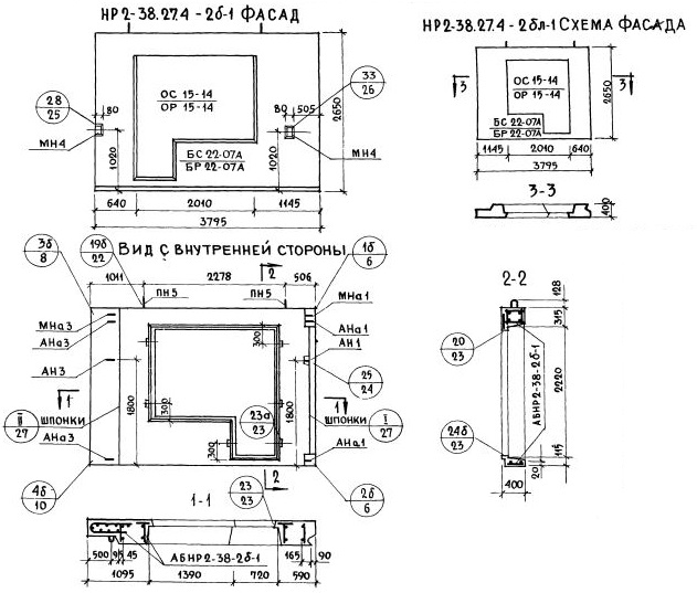 НР2-38.27.4-2бл-1 Наружная стеновая панель рядовая по Серии 1.132-1.